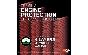 4 CAMADAS DE PROTEÇÃO: Várias camadas de gaze de algodão premium tratadas com um agente de aderência especialmente desenvolvido trabalham juntas para criar uma malha complexa de meio filtrante do motor, projetada para bloquear e reter contaminantes nocivos.